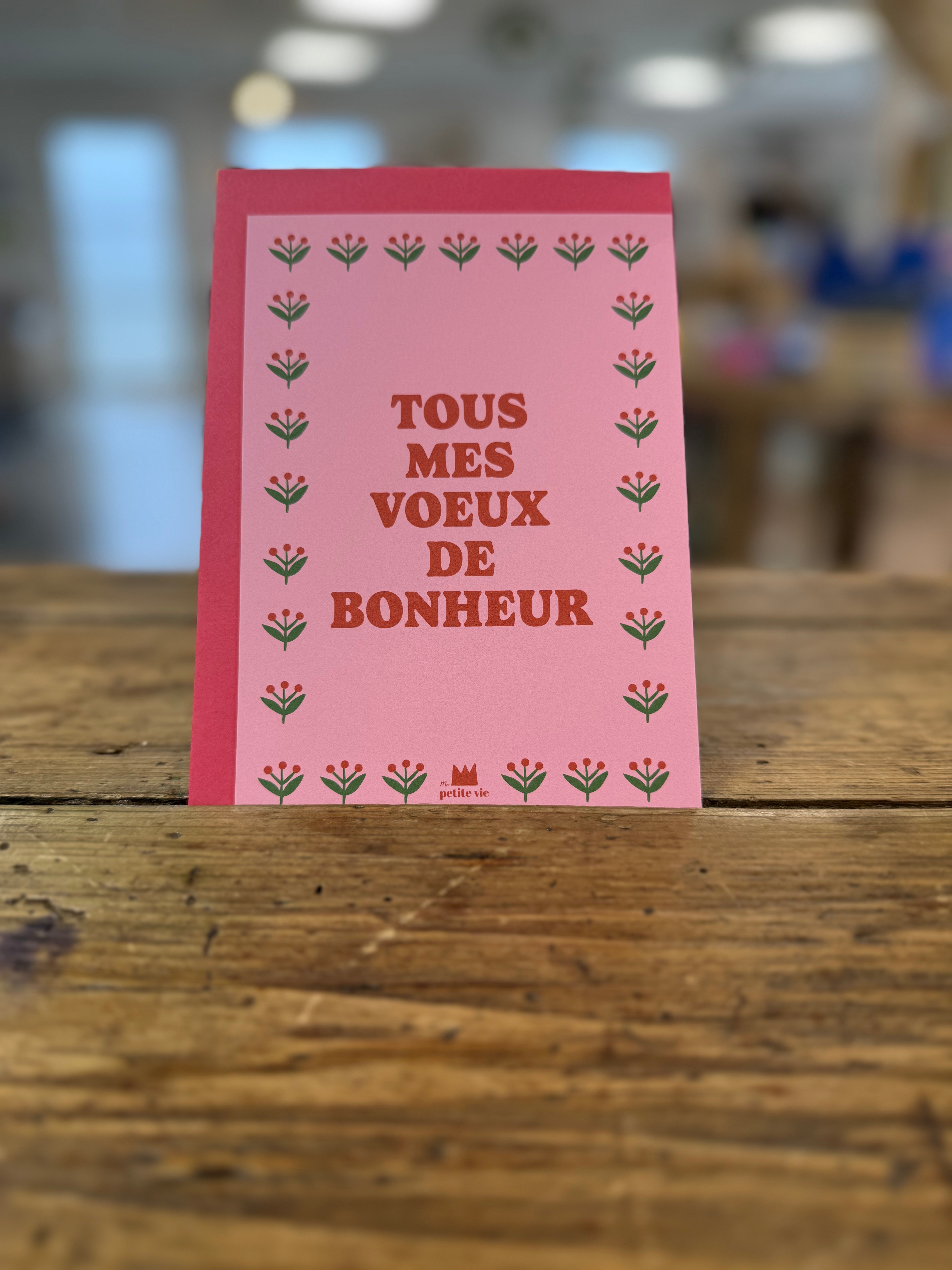 Carte "voeux" : Tous mes voeux de bonheur (avec enveloppe)