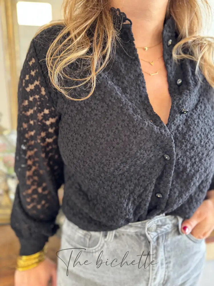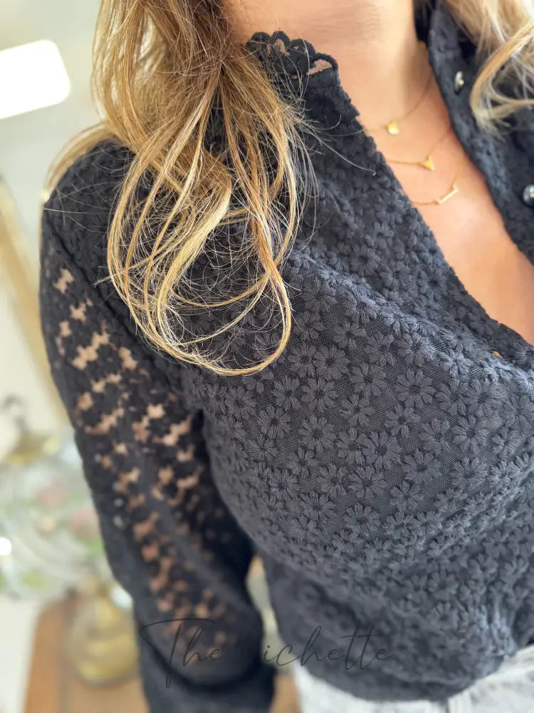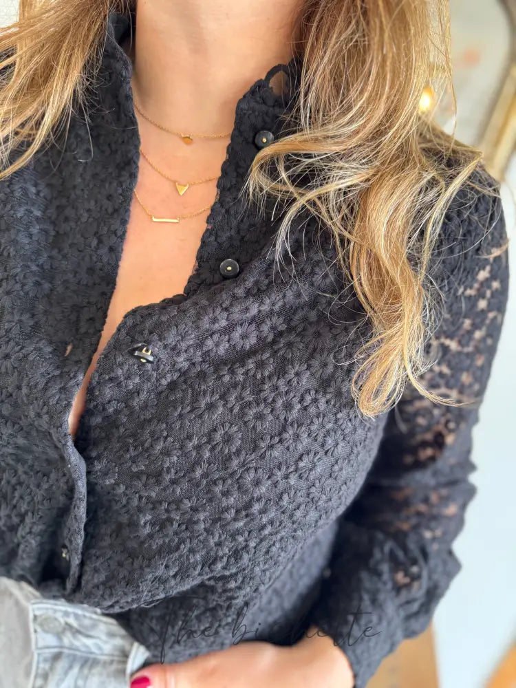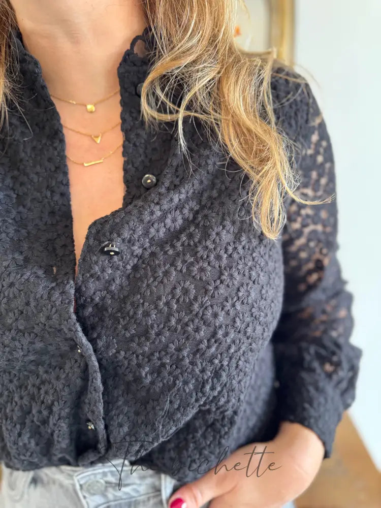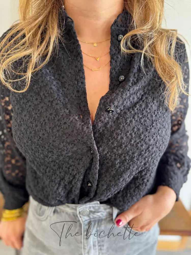 Juliette mesure 1,64m, elle porte habituellement du 36 pour les hauts et du 38 pour les bas. Elle porte la taille S pour les photos de cet article.