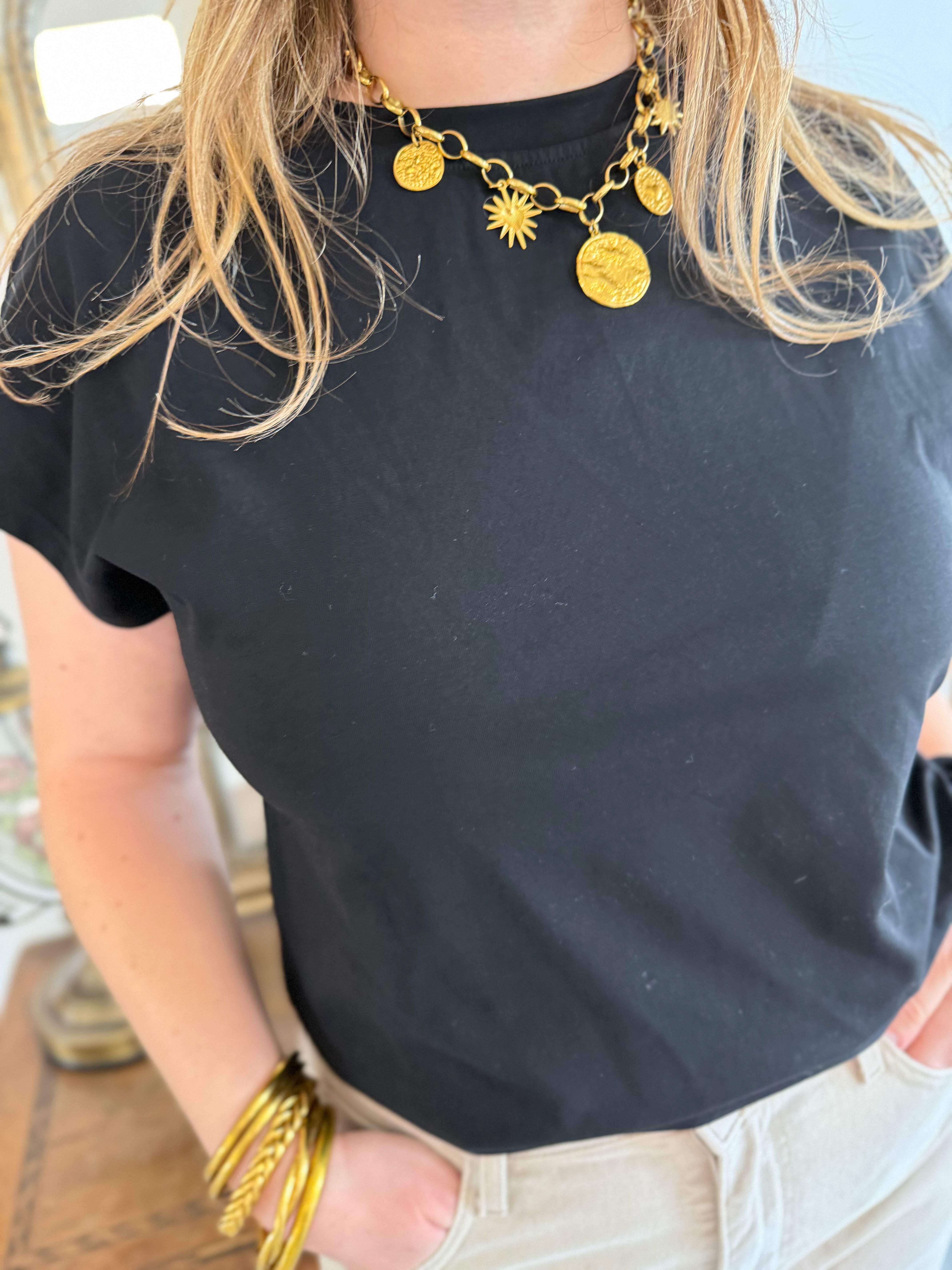 Juliette mesure 1,64m & porte habituellement du 36 pour les hauts. Elle porte la taille S pour les photos de ce t-shirt.