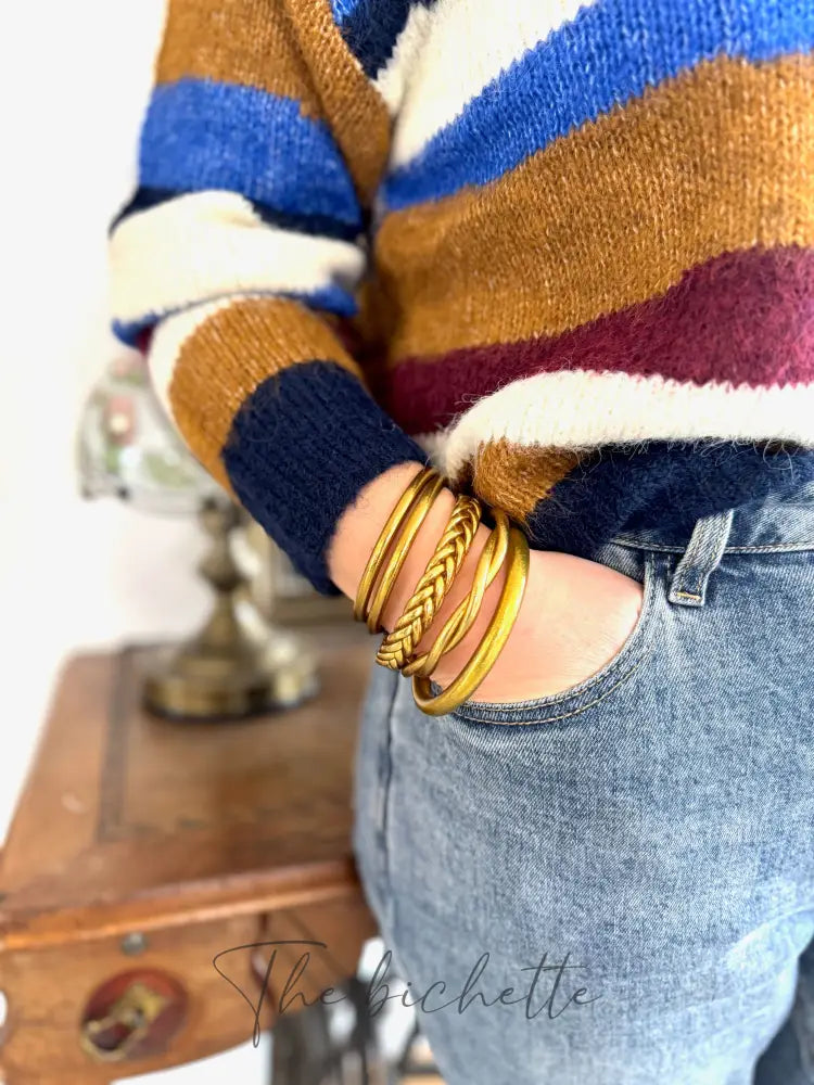 Juliette porte habituellement du 36 pour les hauts et du 38 pour les bas. Elle porte la taille unique pour les photos de cet article. La taille unique peut convenir aux silhouettes pouvant porter du 36 au 42 (selon morphologie).