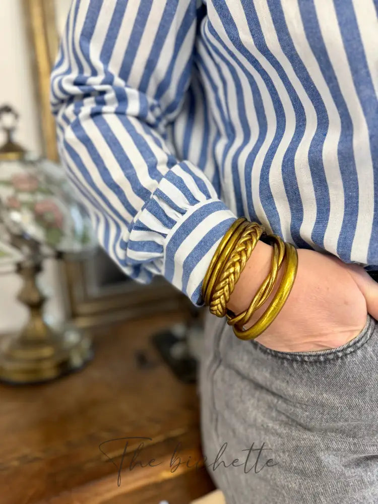 Juliette porte habituellement du 36 pour les hauts et du 38 pour les bas. Elle porte la taille SM pour les photos de cet article.
