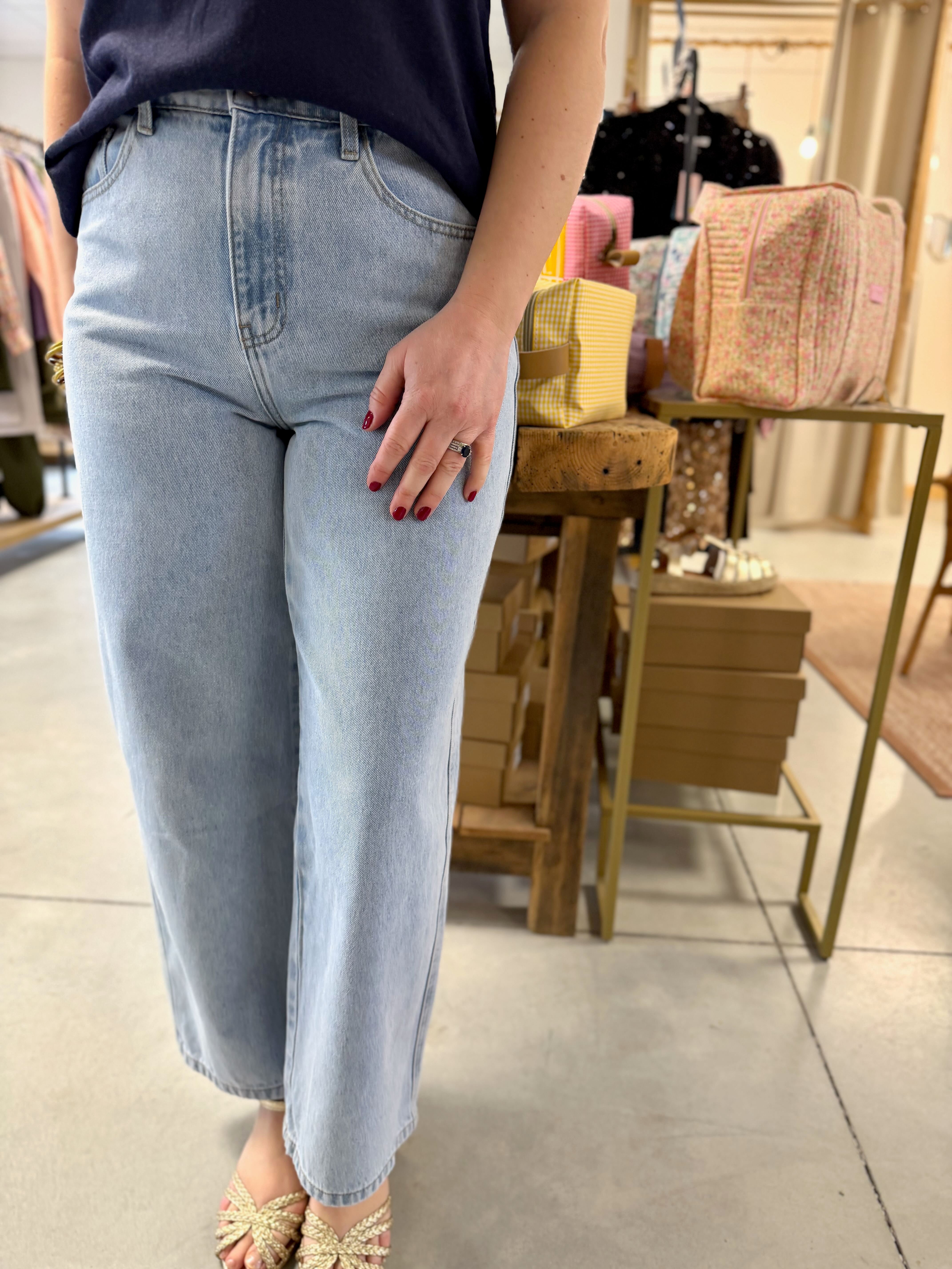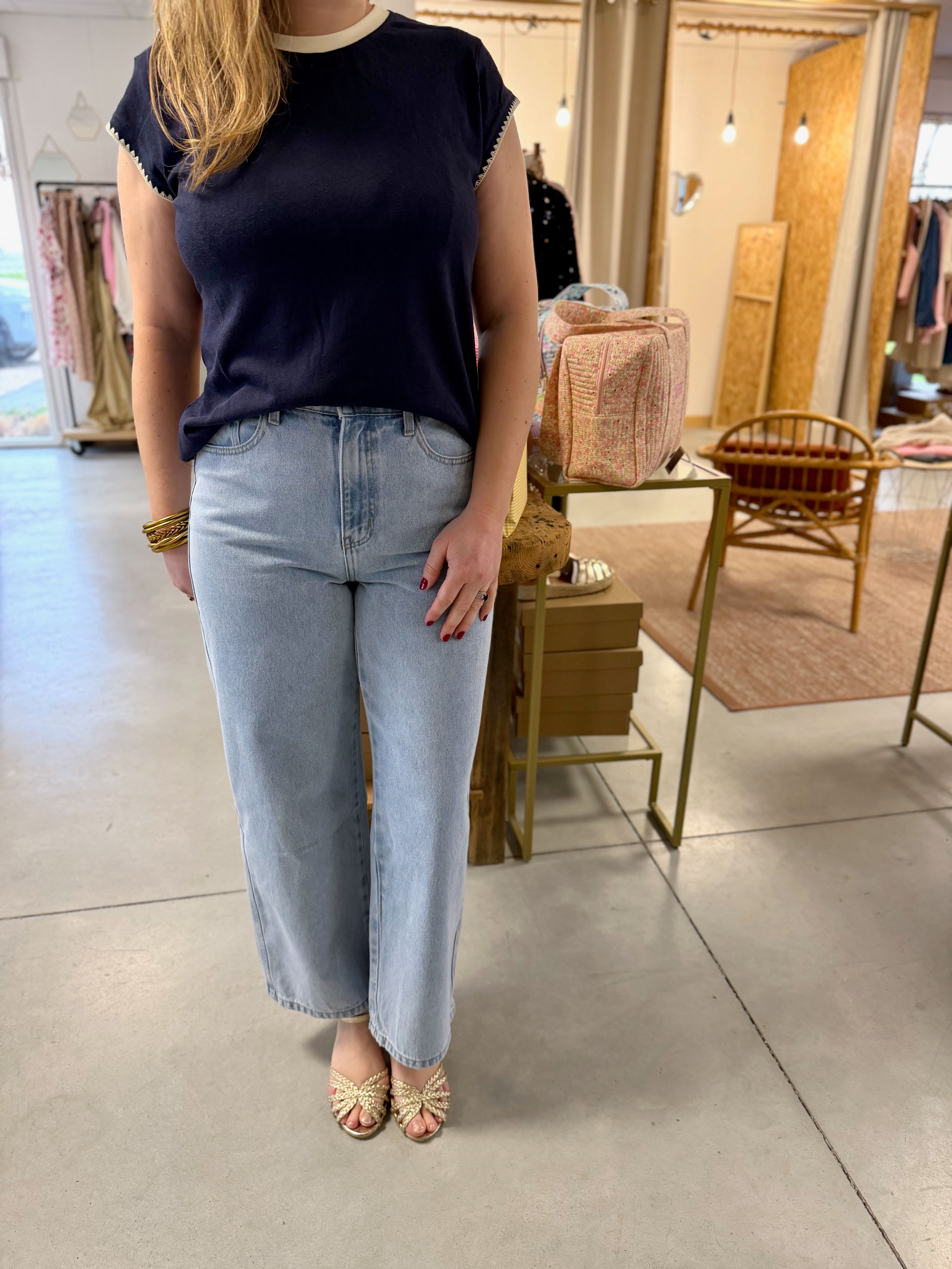 Le Colombe est un jean coupe wide. Sa taille est délicatement cintrée, puis la coupe s’évase harmonieusement des hanches jusqu’au bas de jambe, créant une silhouette fluide et élégante.