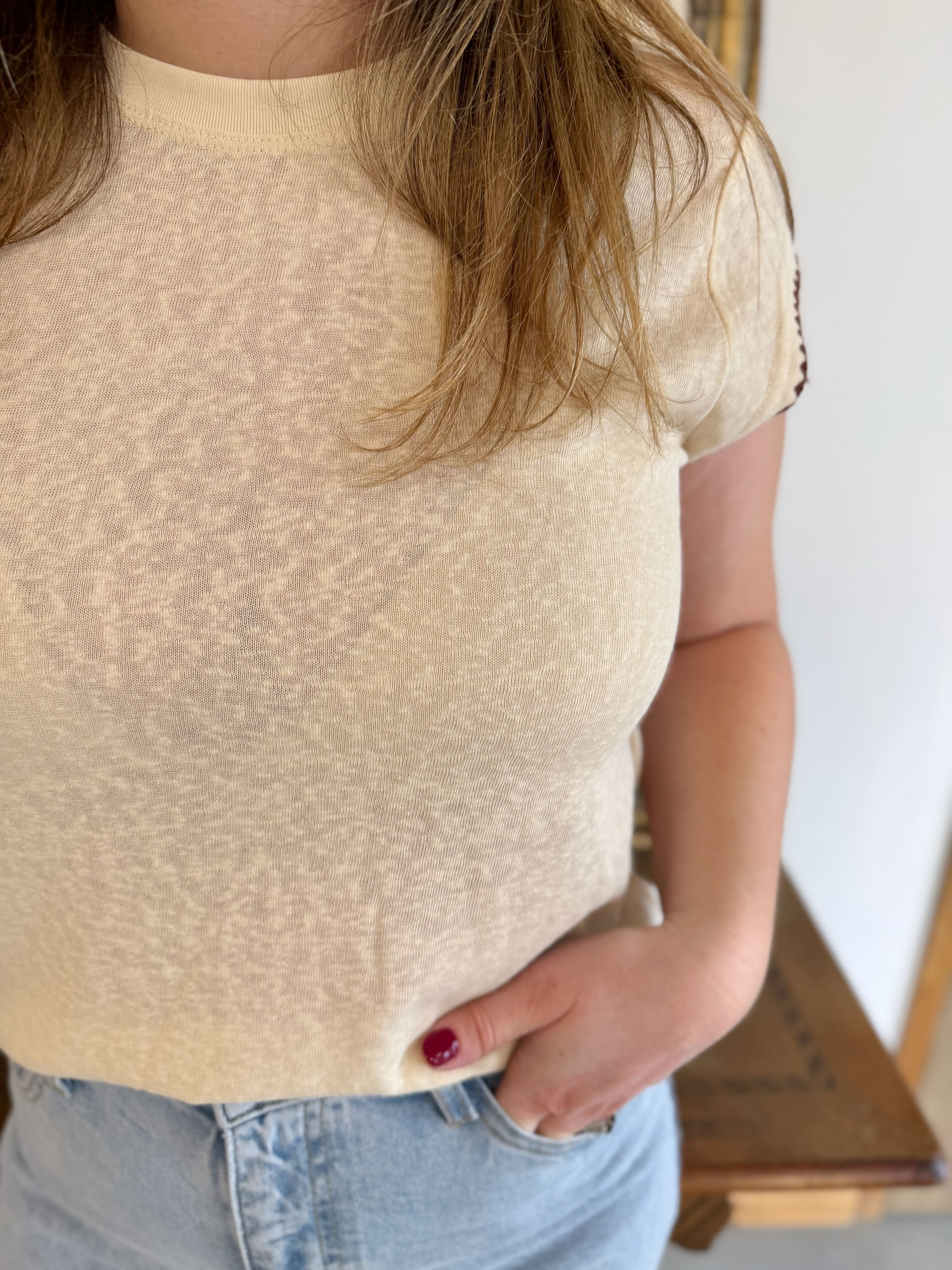 - Manches courtes avec détails brodés