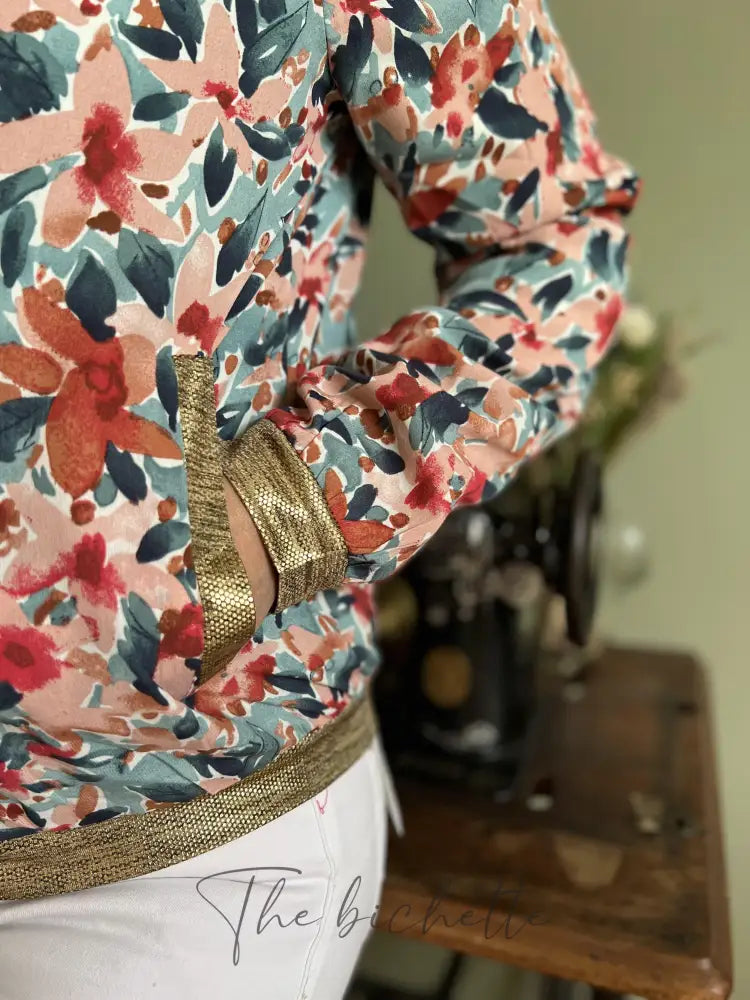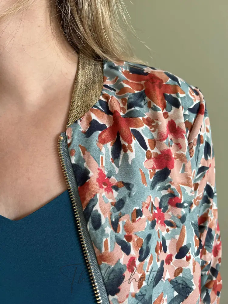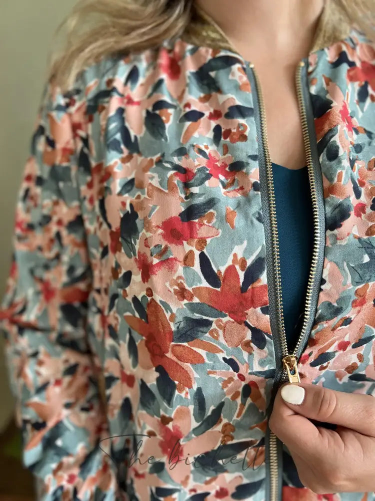 Wassergrüne Bomberjacke mit Blumenmuster | Terrakotta