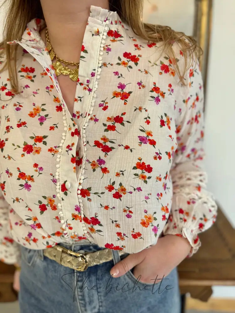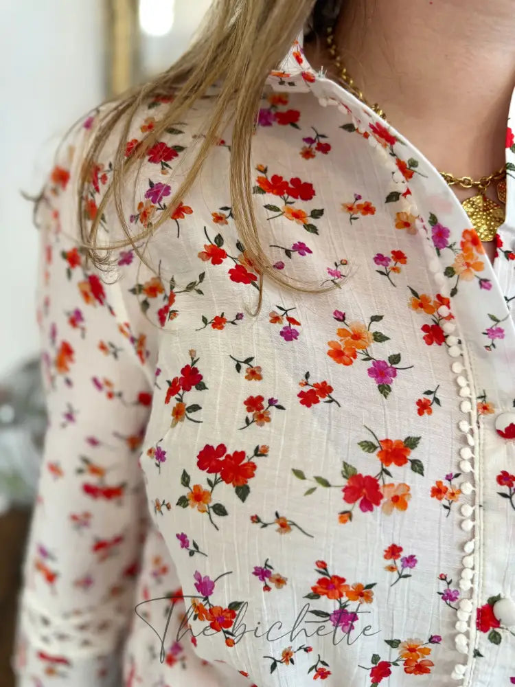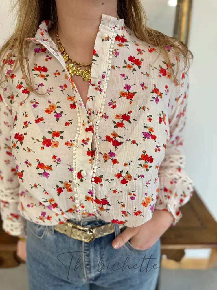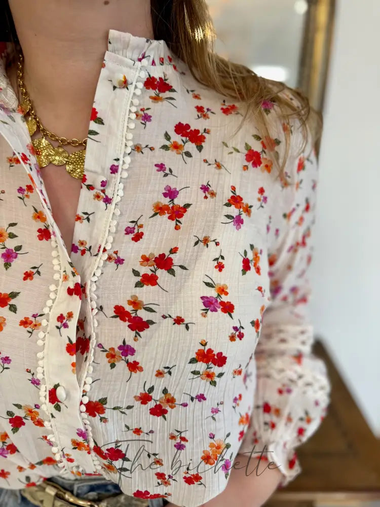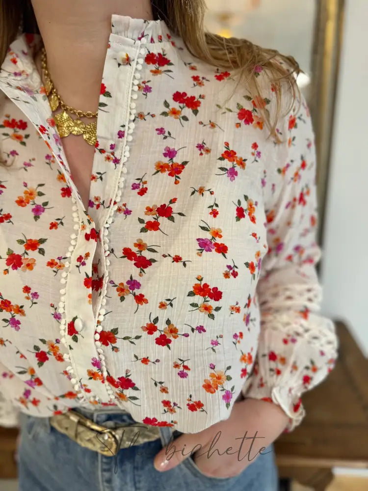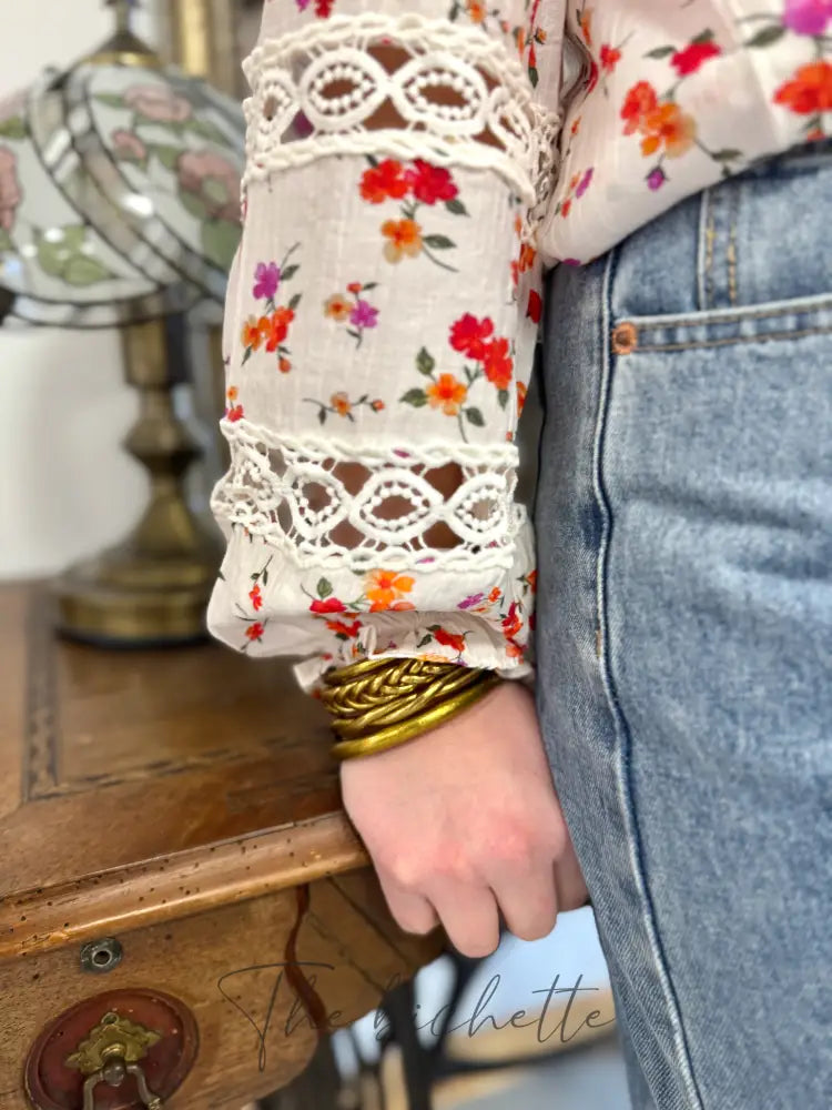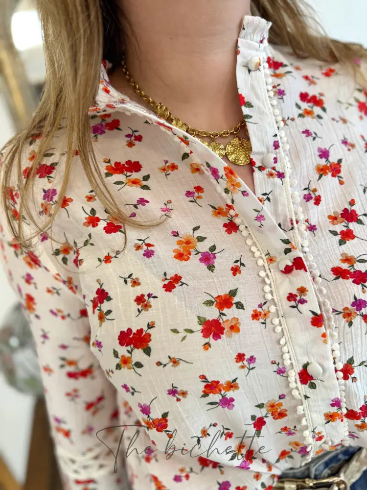 Weiße Bluse mit Blumenmuster • Im April