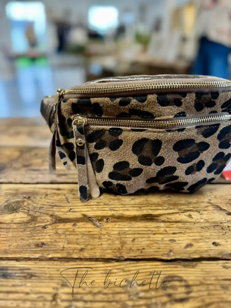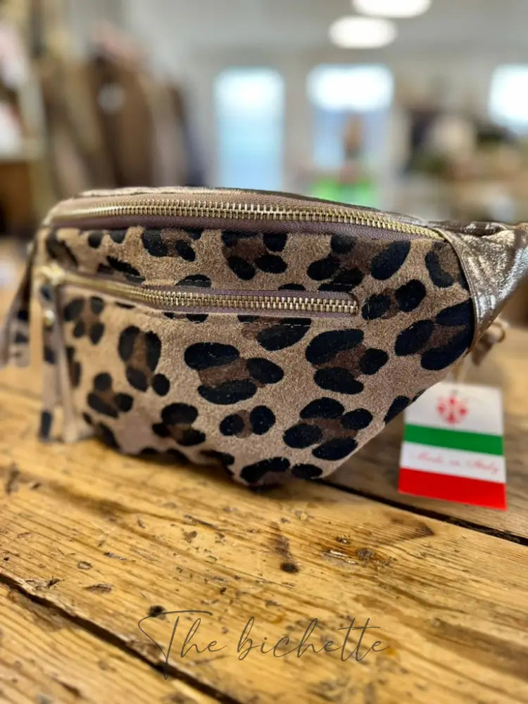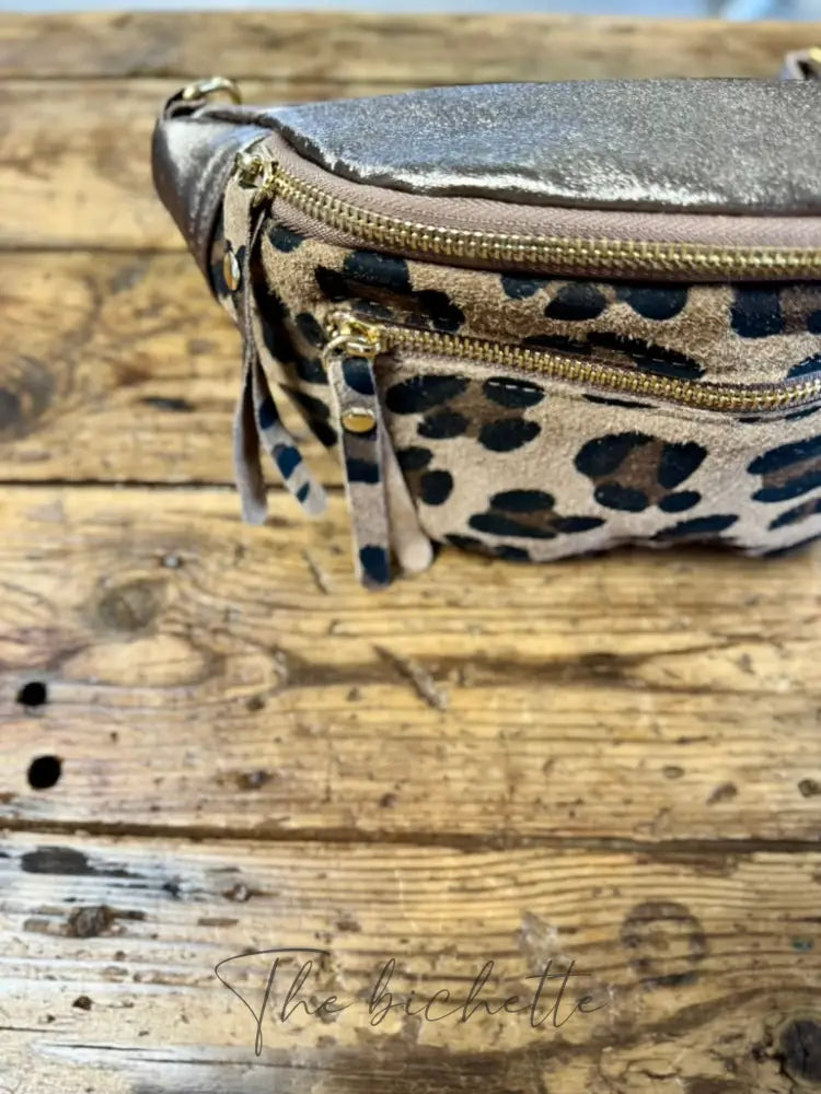 Beigefarbene Leoparden-Bronzetasche