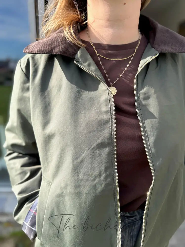 Kurze Windjacke mit geripptem Baumwollkragen • Laura Jo