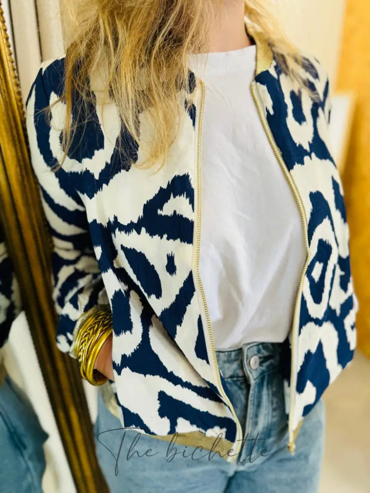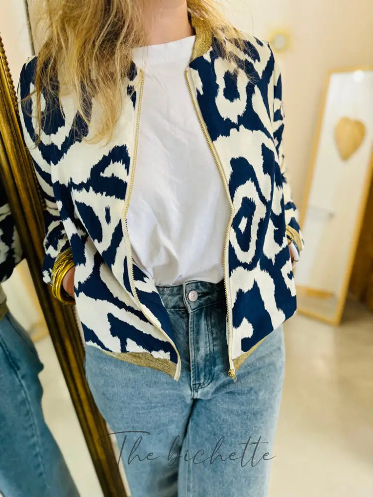 Ecru-Bomberjacke mit Blumenmuster • Emma Ella