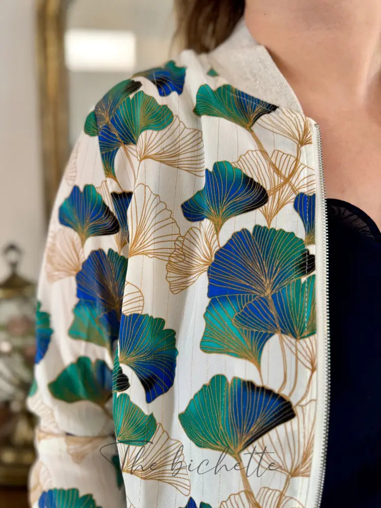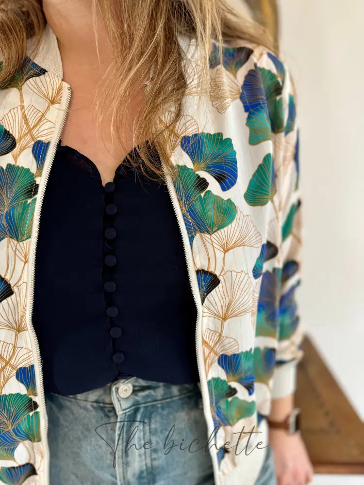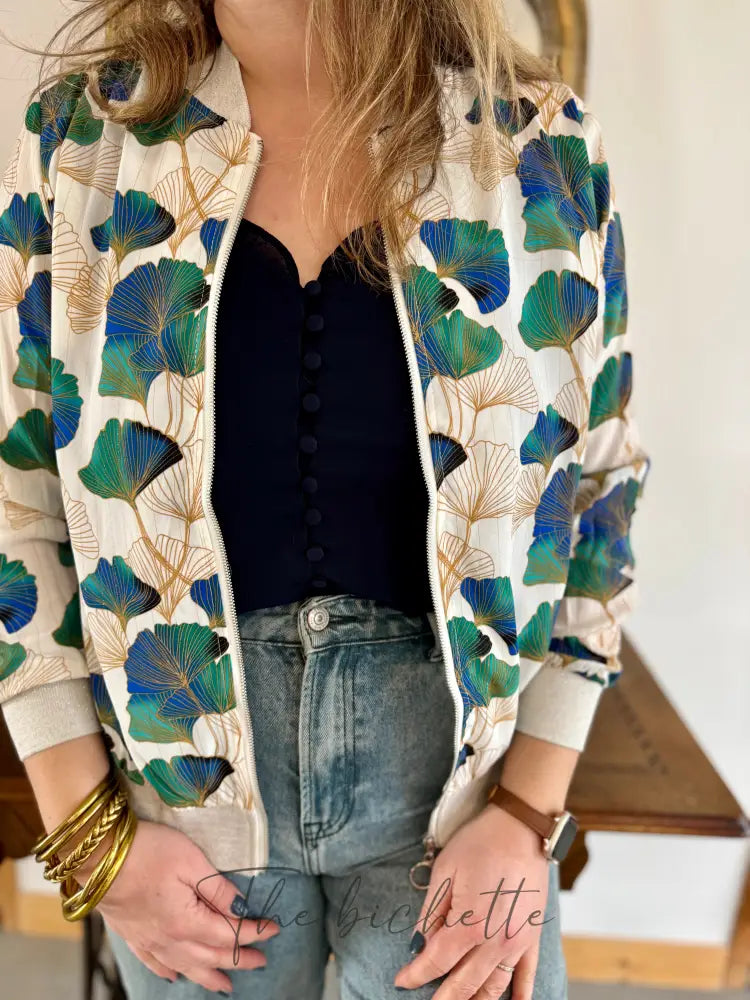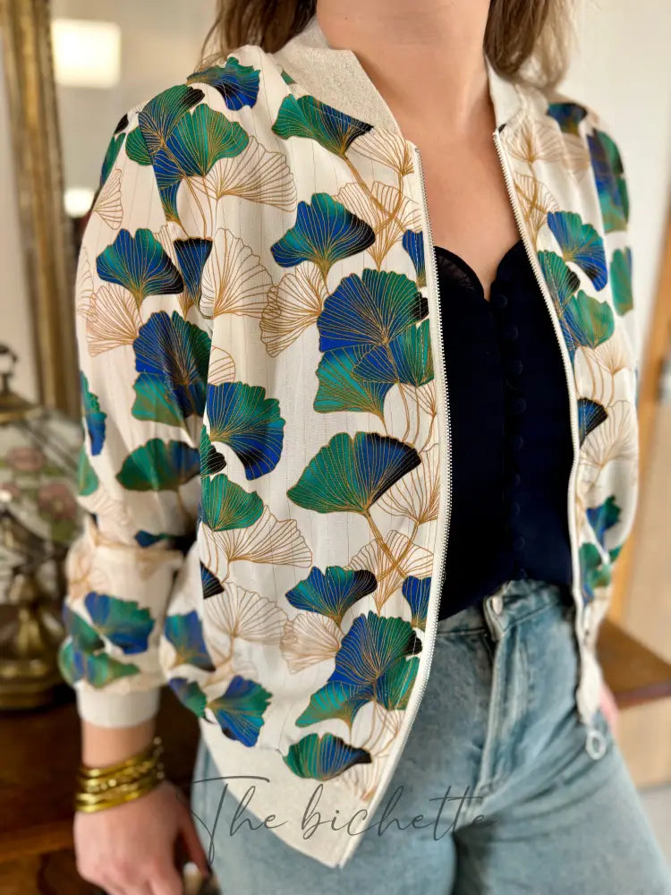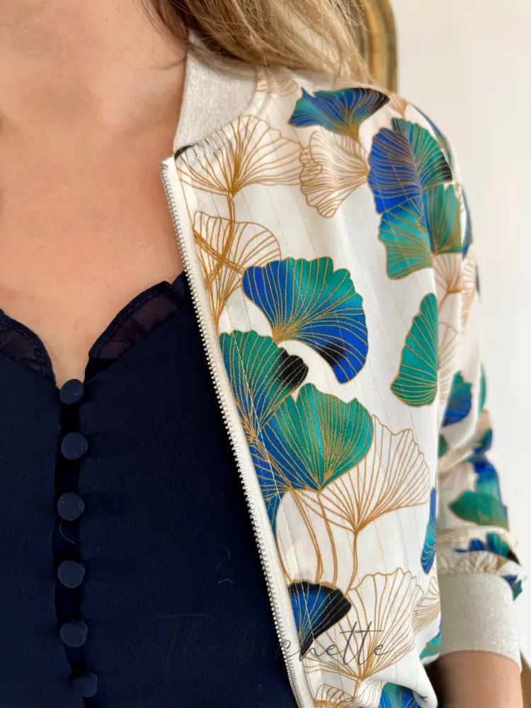 Leichte ecrufarbene Bomberjacke mit Gynko-Muster