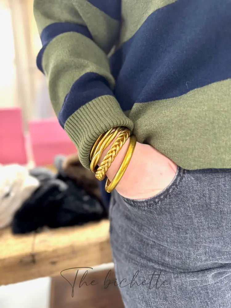 Juliette ist 1,64 m groß und trägt normalerweise Oberteile in Größe 36 und Hosen in Größe 38. Auf den Fotos zu diesem Artikel trägt sie das Einheitsgrößen-Kleidungsstück.