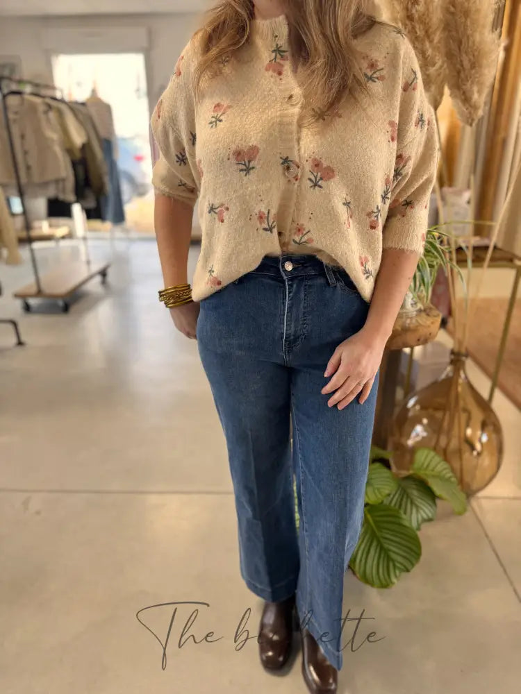 Juliette mesure 1,64m & porte habituellement du 36 pour les hauts. Elle porte la taille unique pour les photos. Cette taille unique peut convenir aux tailles 34 à 42.