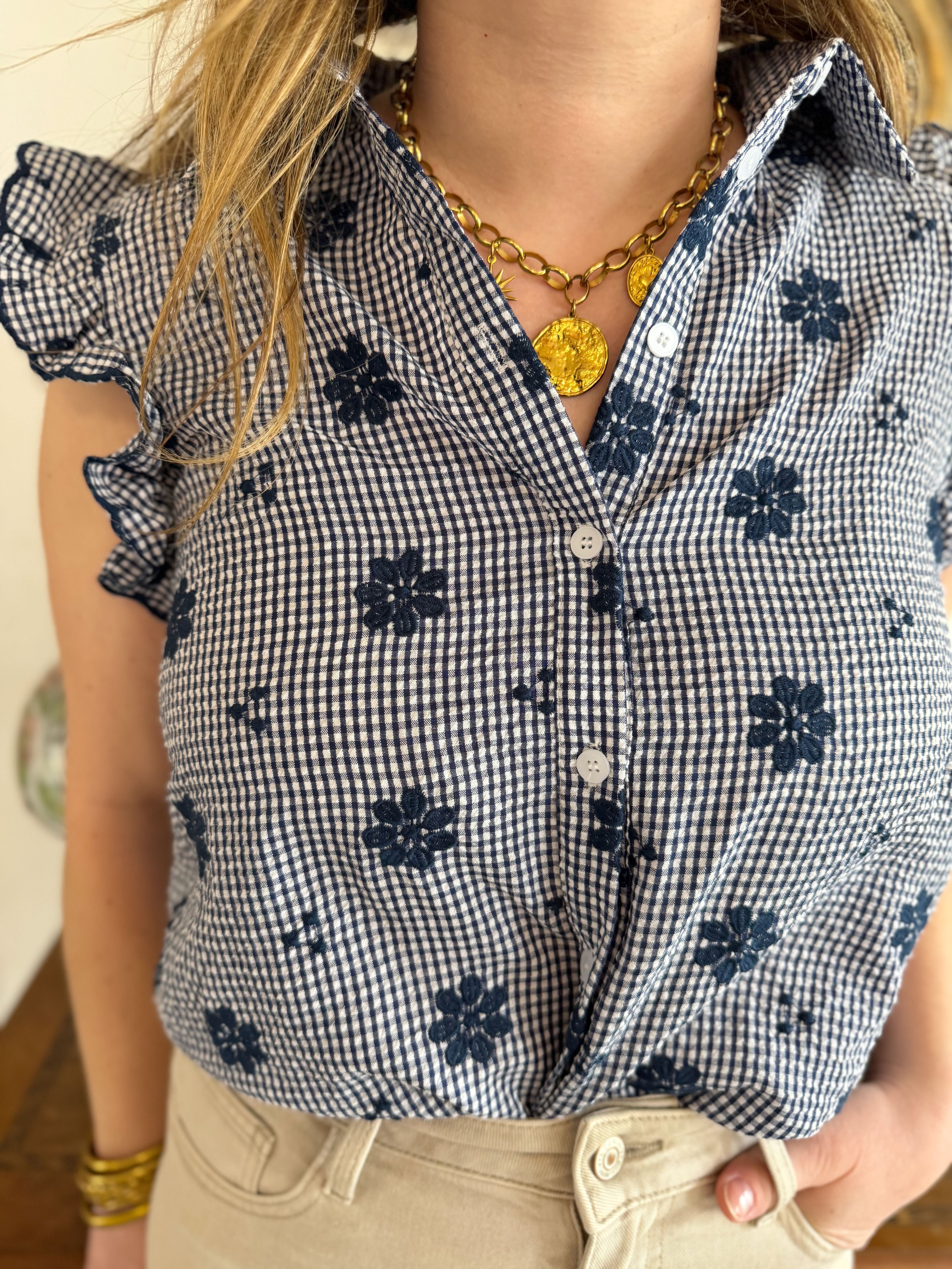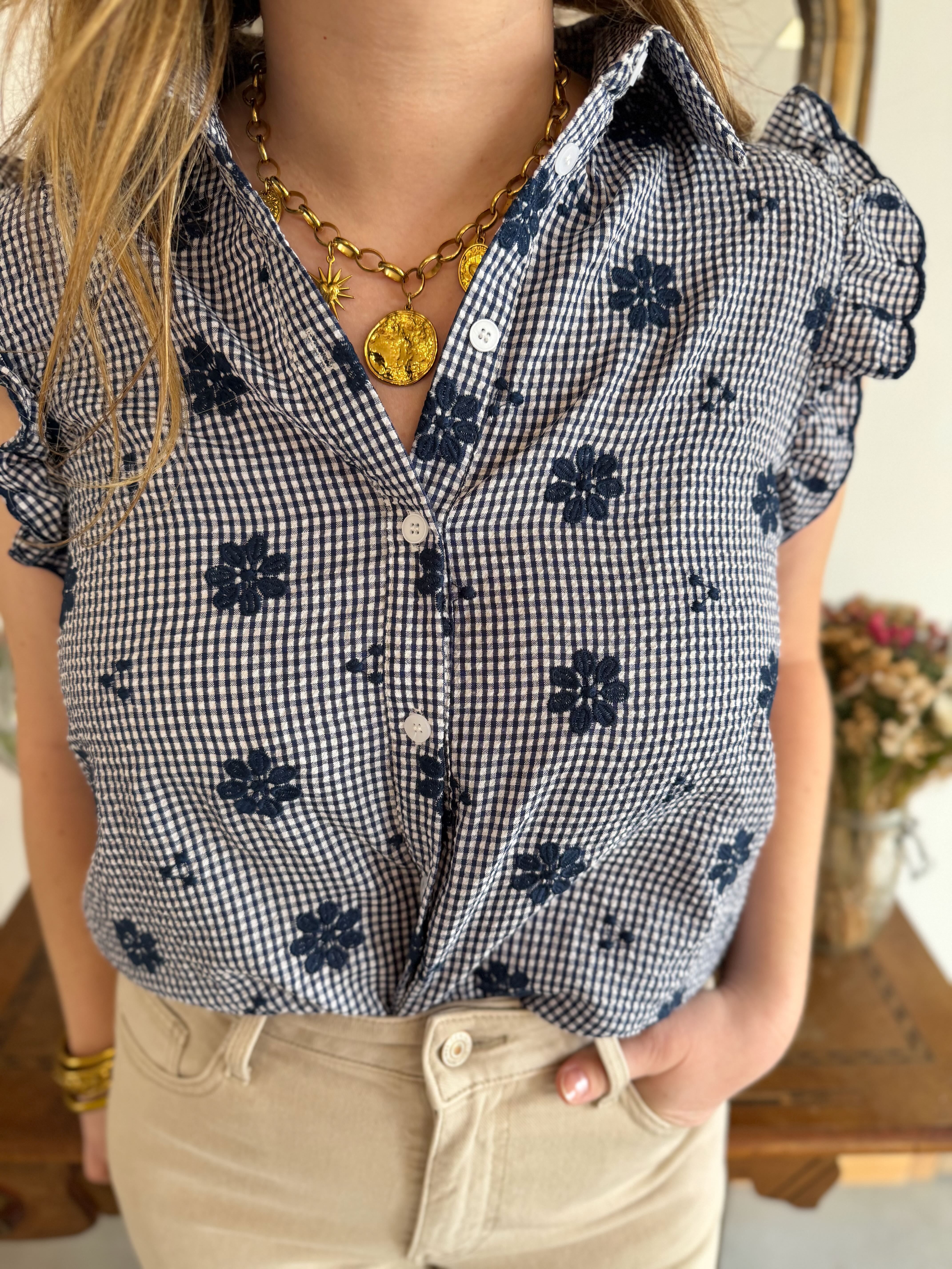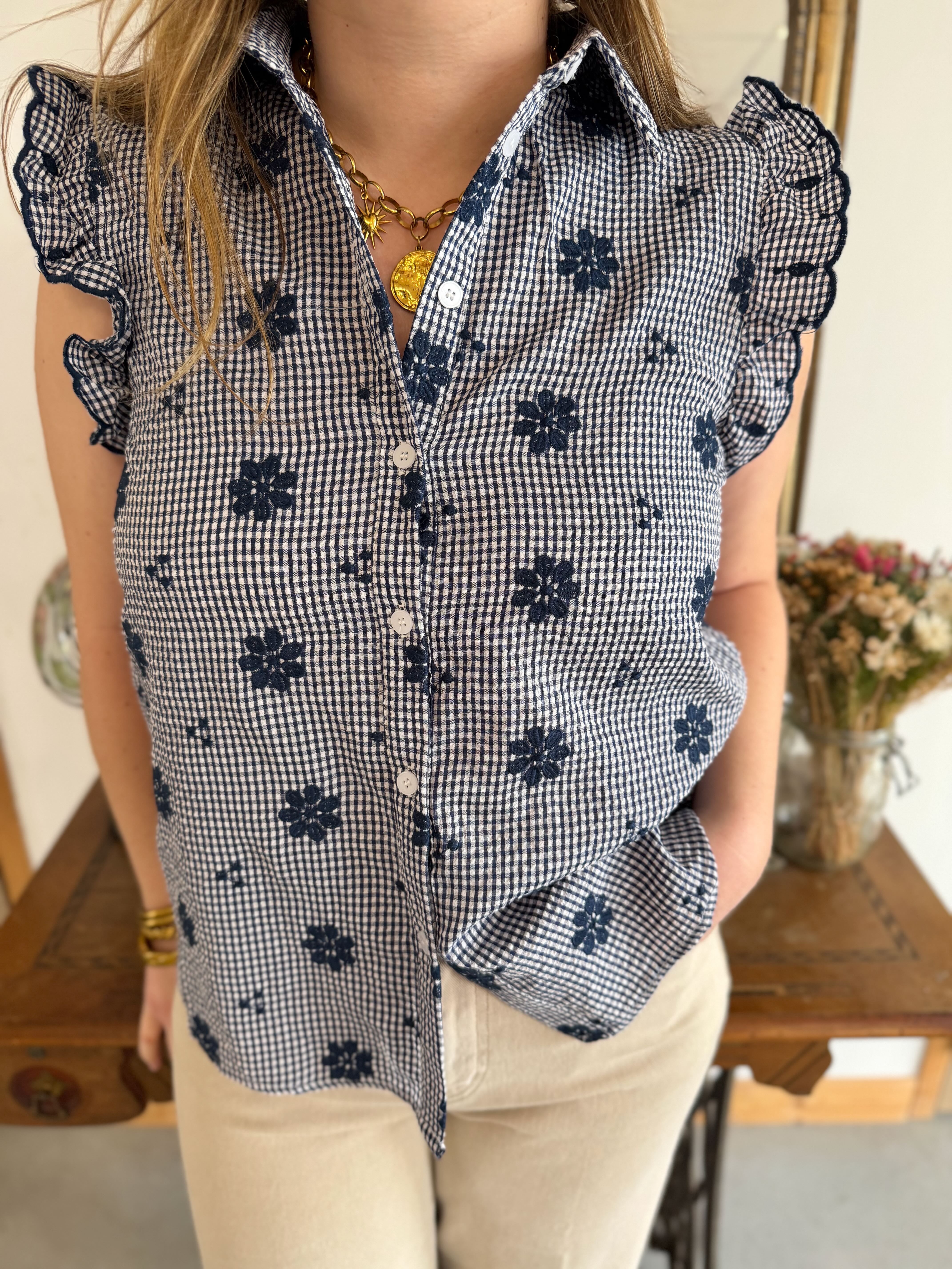 Top marine à motifs fleuris • In April