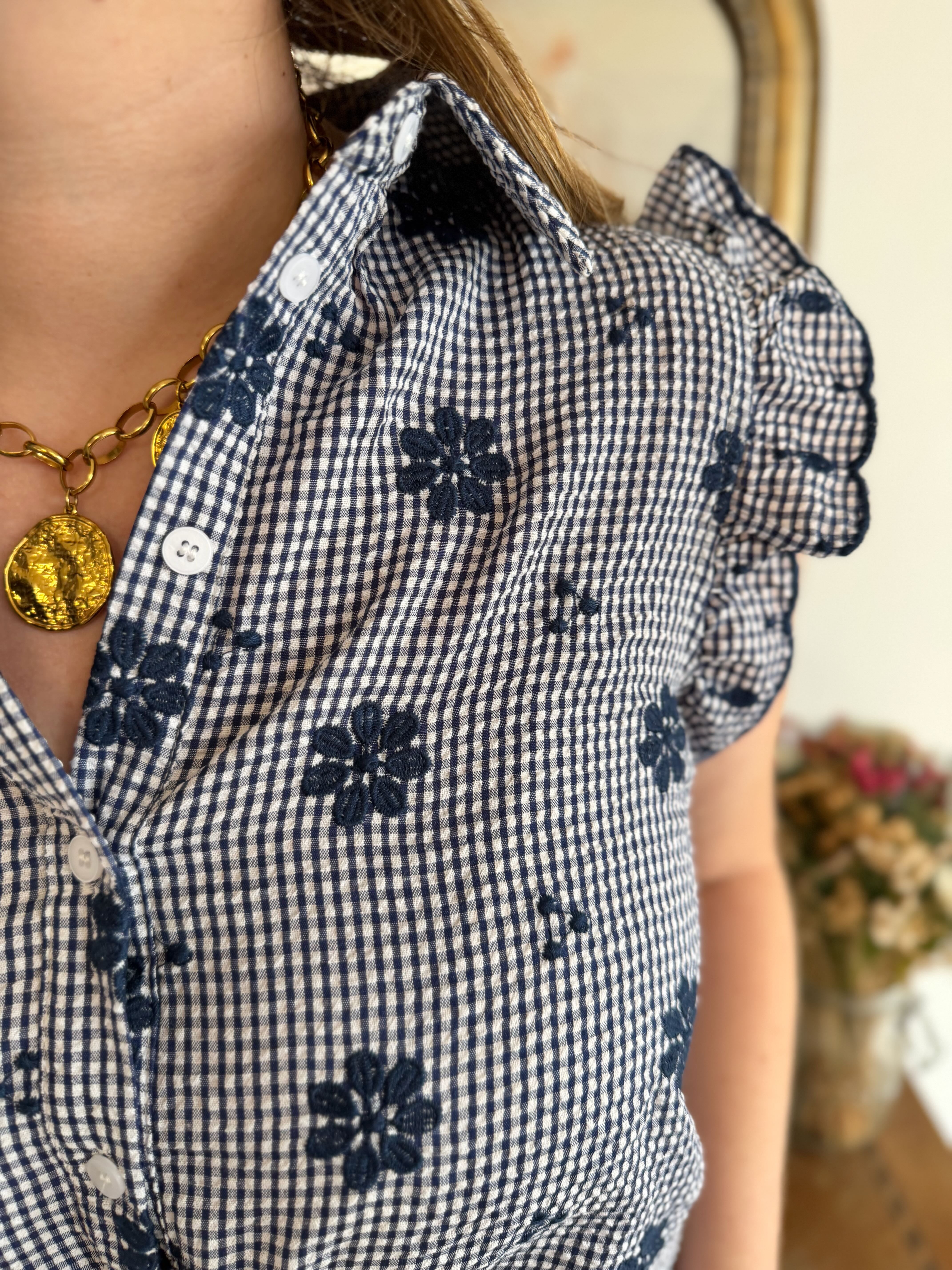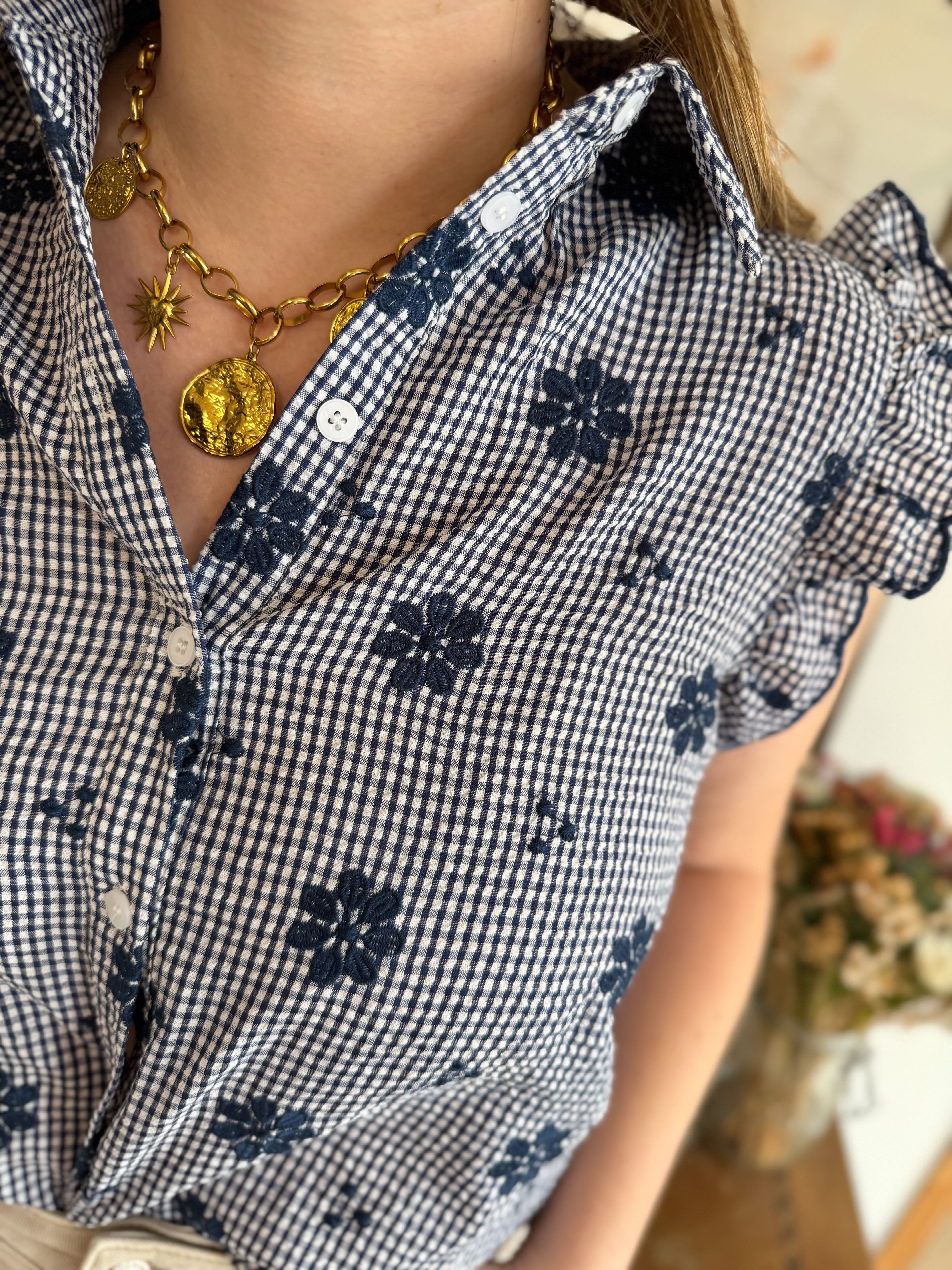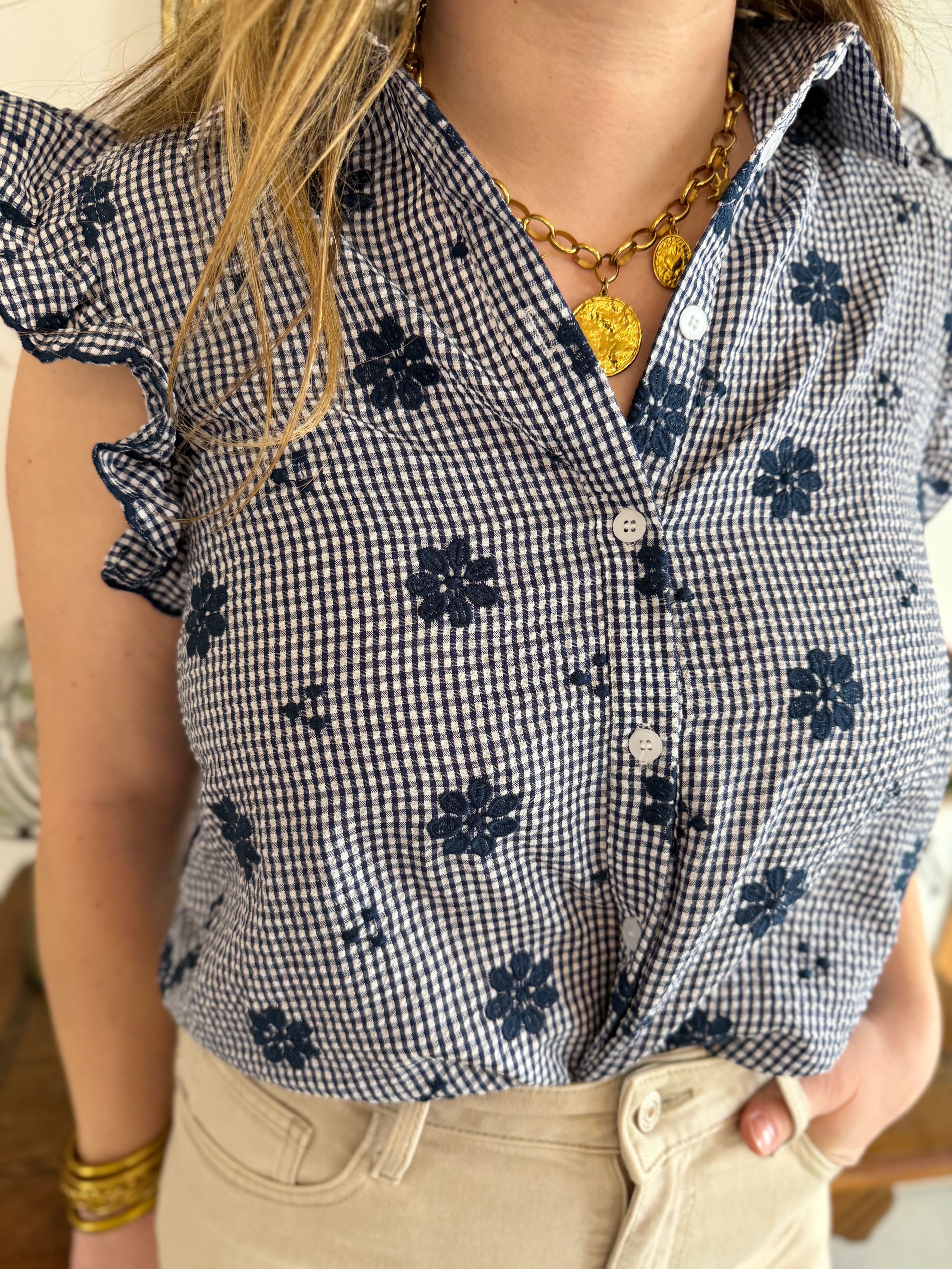 Top marine à motifs fleuris • In April