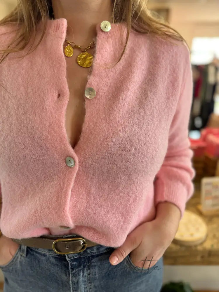 Discover the Mathilde cardigan with its round neck and tightly woven knit for an incredibly soft feel. The mother-of-pearl buttons add a touch of style, while the fitted long sleeves and straight cut offer ultimate comfort. Enjoy its endless softness!