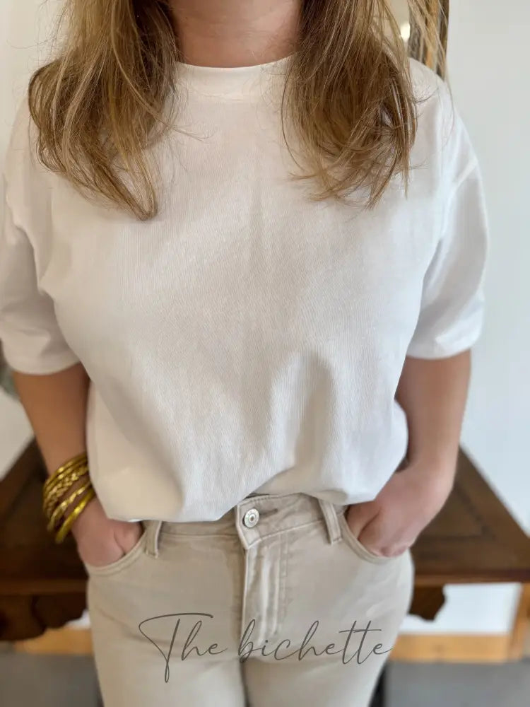 Juliette is 1.64m tall and usually wears a size 36 for tops and a size 38 for bottoms. She is wearing the one-size-fits-all garment in the photos for this article. This one-size-fits-all garment can fit body types ranging from sizes 36 to 42 (depending on body shape).