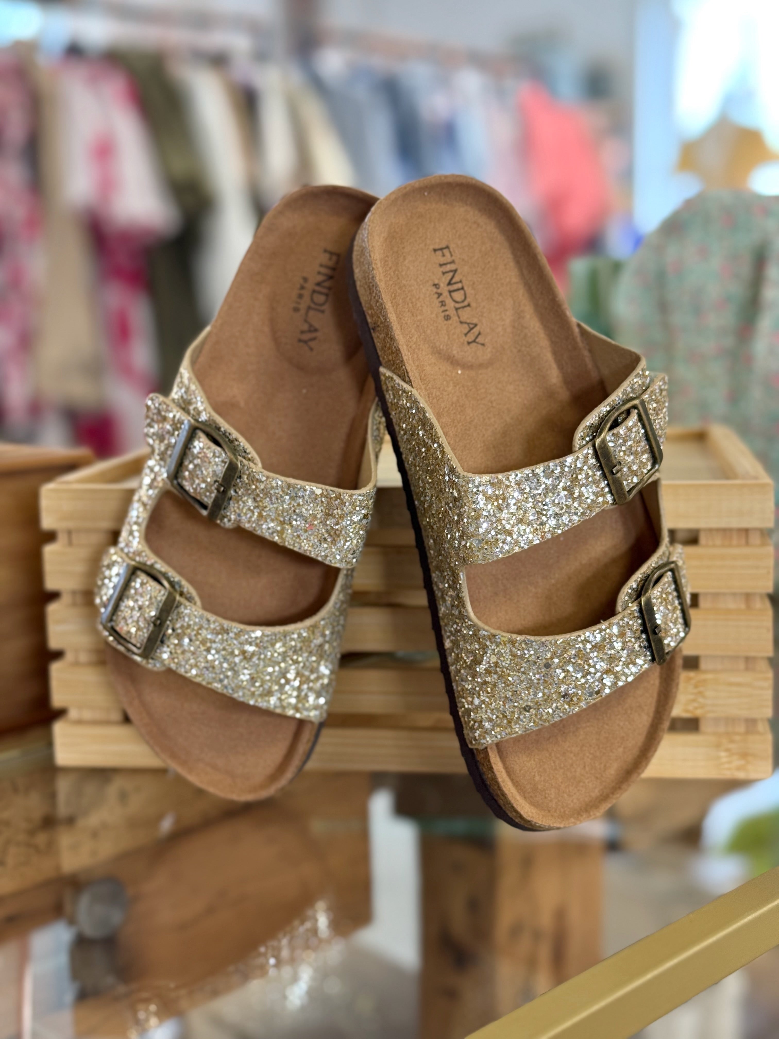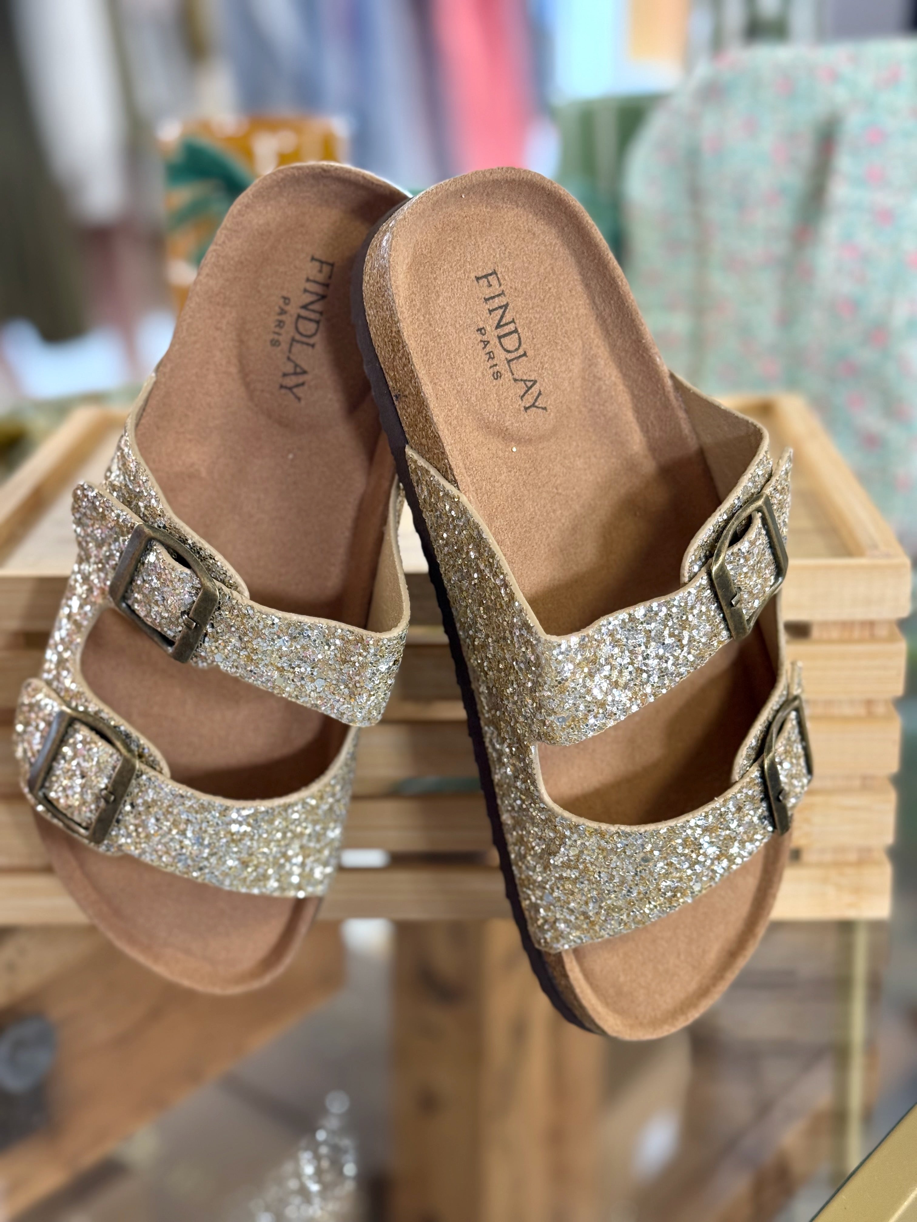 Ces sandales à double bride revisitent un grand classique avec leur finition pailletée ultra lumineuse, parfaite pour twister toutes vos tenues.
