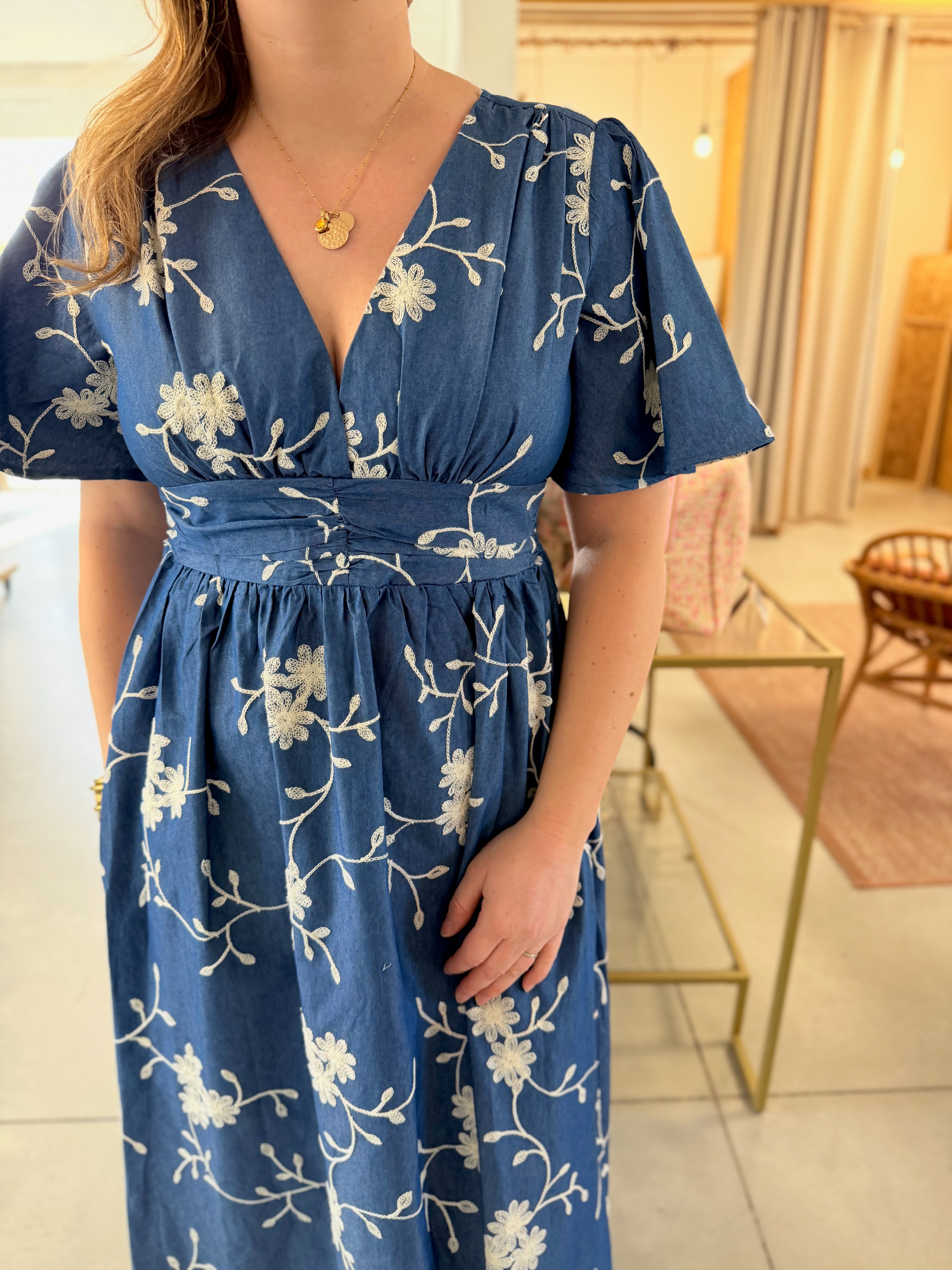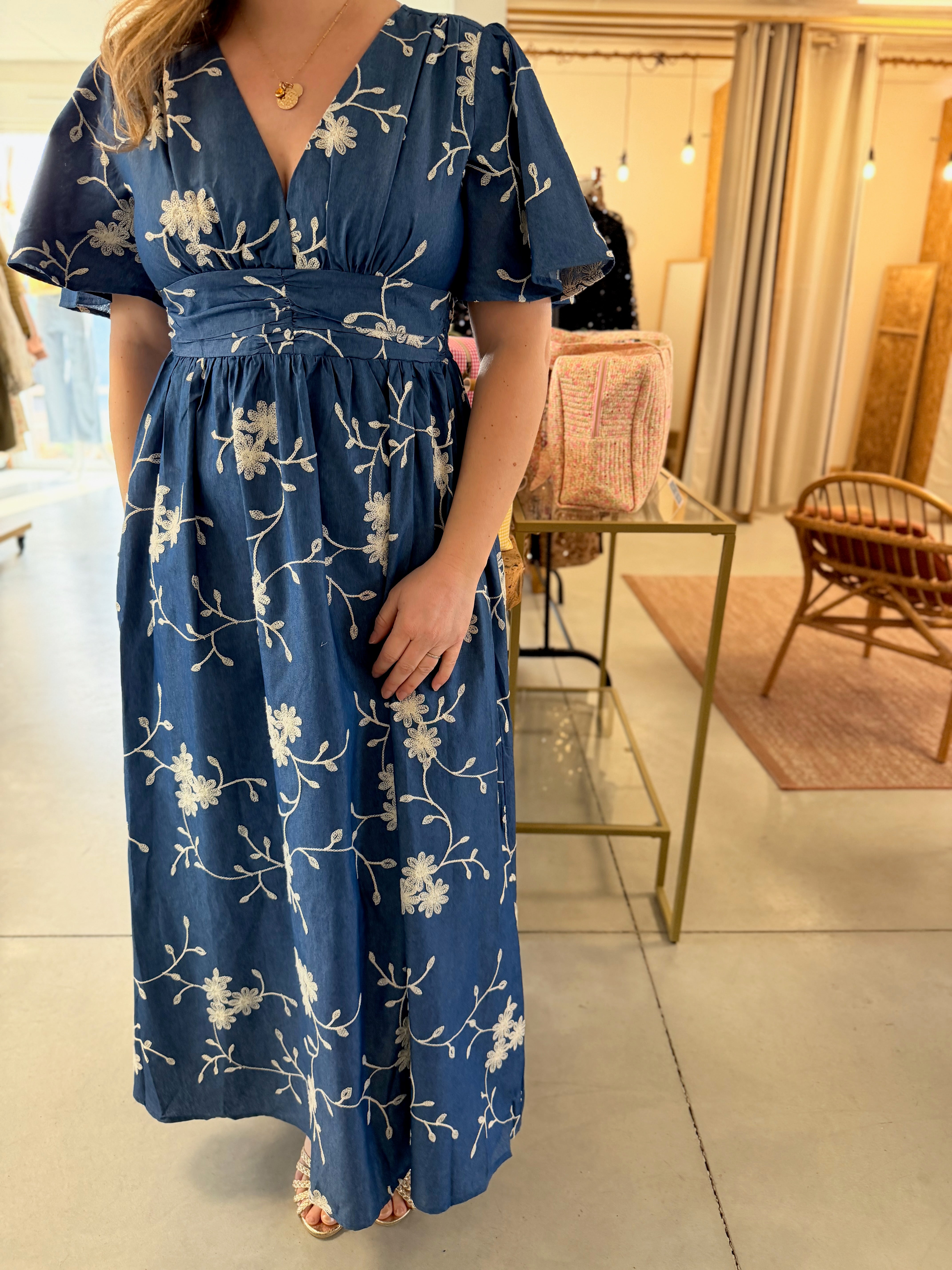 Robe longues à motifs brodés fleuris • Maëlle