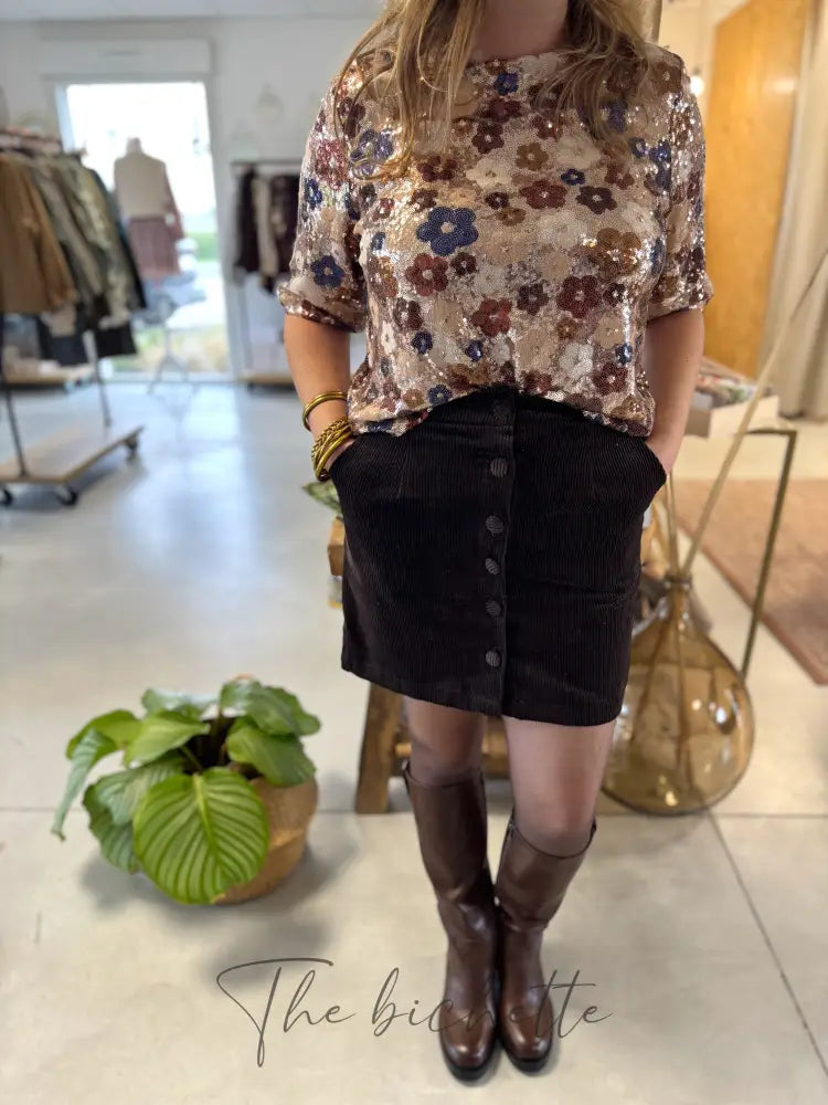 Juliette usually wears a size 36 for tops and a size 38 for bottoms. She is wearing a size M for the photos in this article.