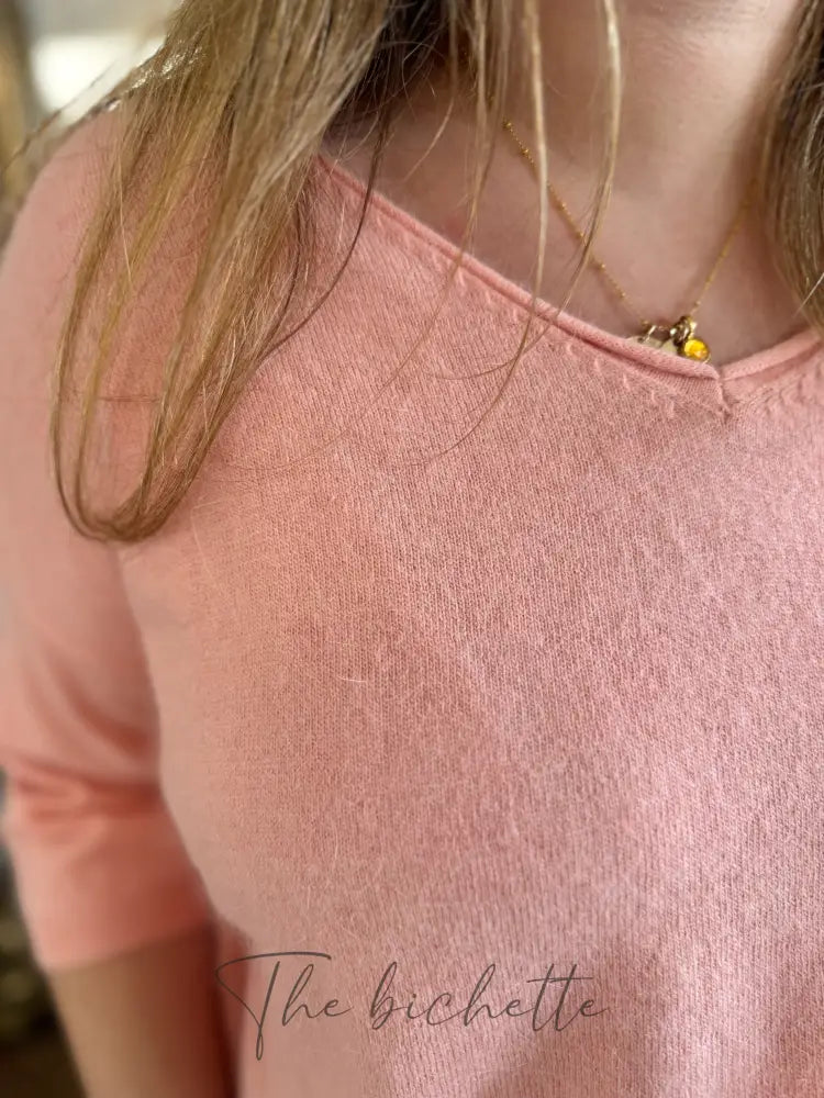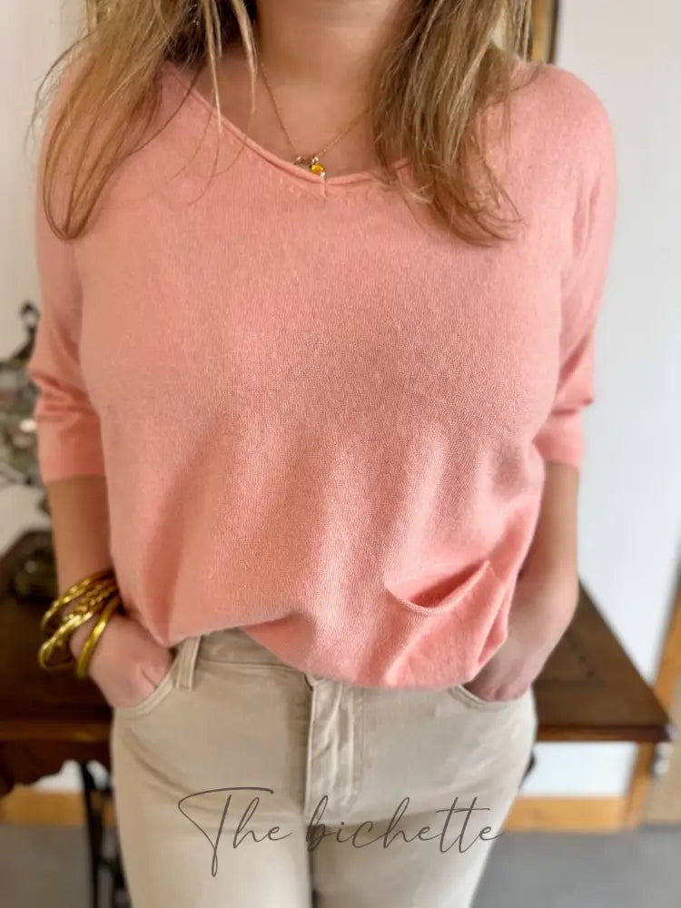 Ce pull en maille douce au col en V vous offre un confort absolu. Avec ses manches 3/4 et sa poche à l'avant, il allie style et praticité. Idéal pour les journées fraîches, ce pull en tilleul ajoute une touche d'élégance à votre tenue.