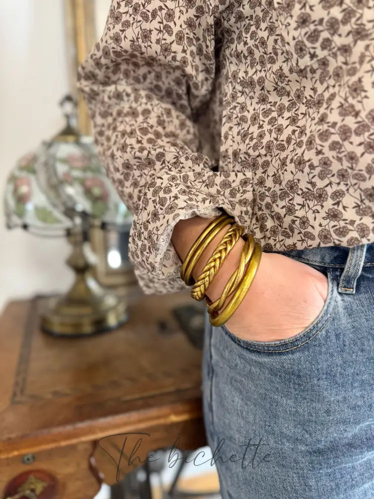 Juliette usually wears a size 36 for tops and a size 38 for bottoms. She is wearing size SM for the photos in this article.
