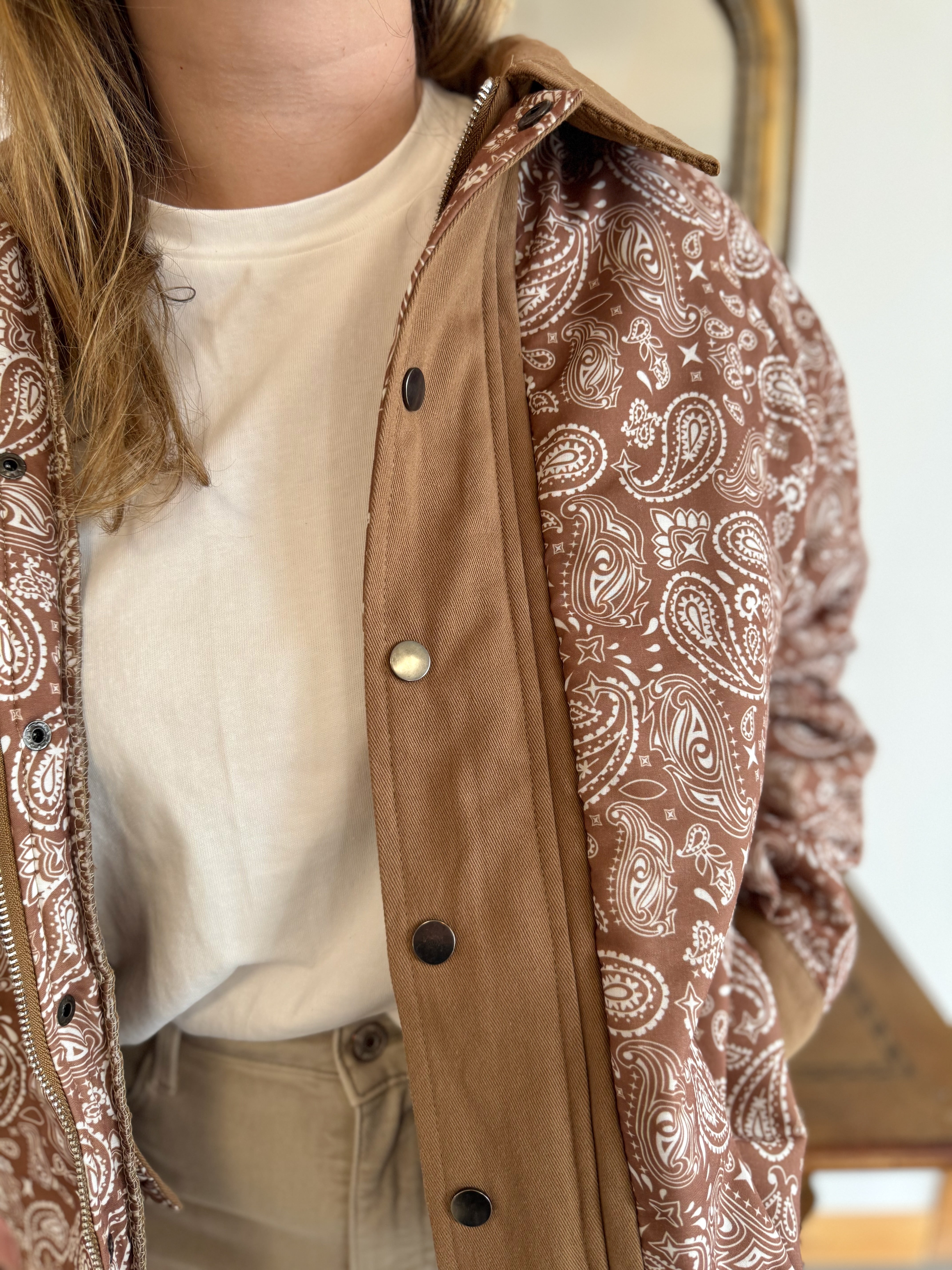 - Col chemise en Jean Camel, reversible sur un côté velour Camel