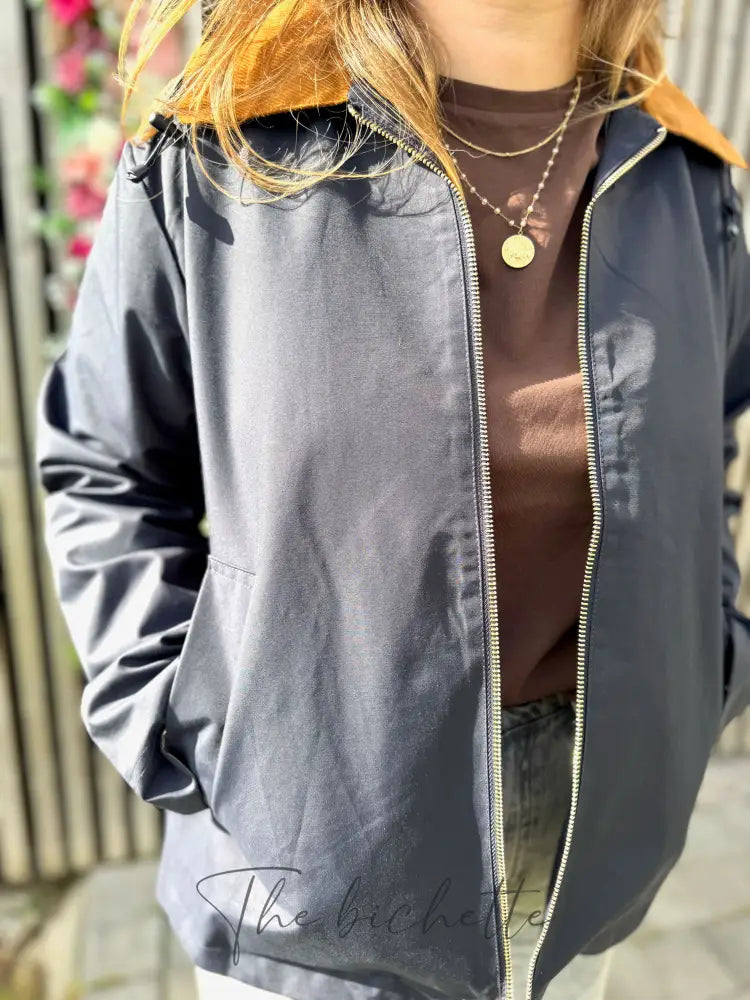 Coupe-vent court avec col en coton côtelé • Laura Jo