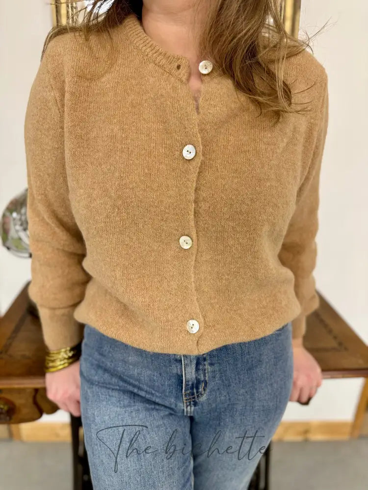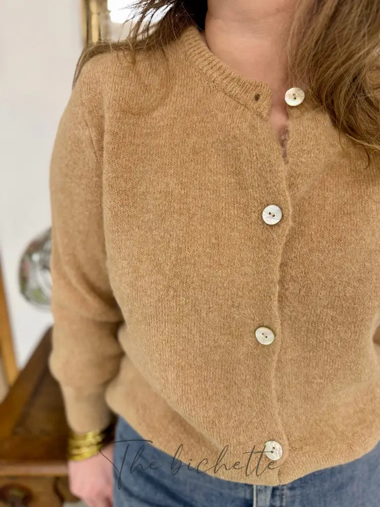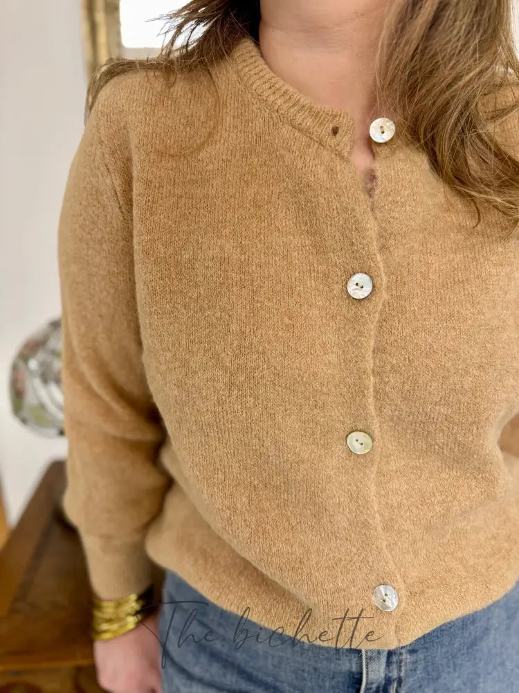 Découvrez le gilet Mathilde avec son col rond et sa maille très serrée pour une sensation toute douce. Les boutons de couleur nacré ajoutent une touche de style tandis que les manches longues resserrées et la coupe droite offrent un confort ultime. Profitez de sa douceur sans fin !