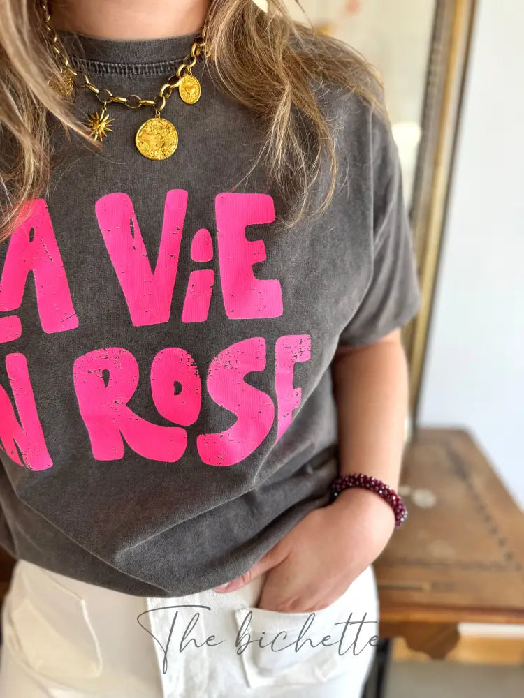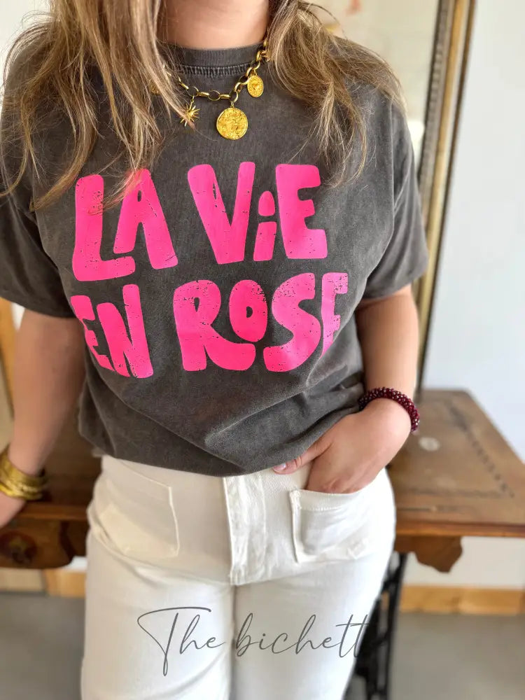 Elle porte la taille unique pour les photos de ce t-shirt. La taille unique peut convenir aux morphologies portant du 36 au 40 (voir 42 selon le tour de poitrine). Si vous avez la moindre interrogations, n'hésitez pas à nous contacter ☺️